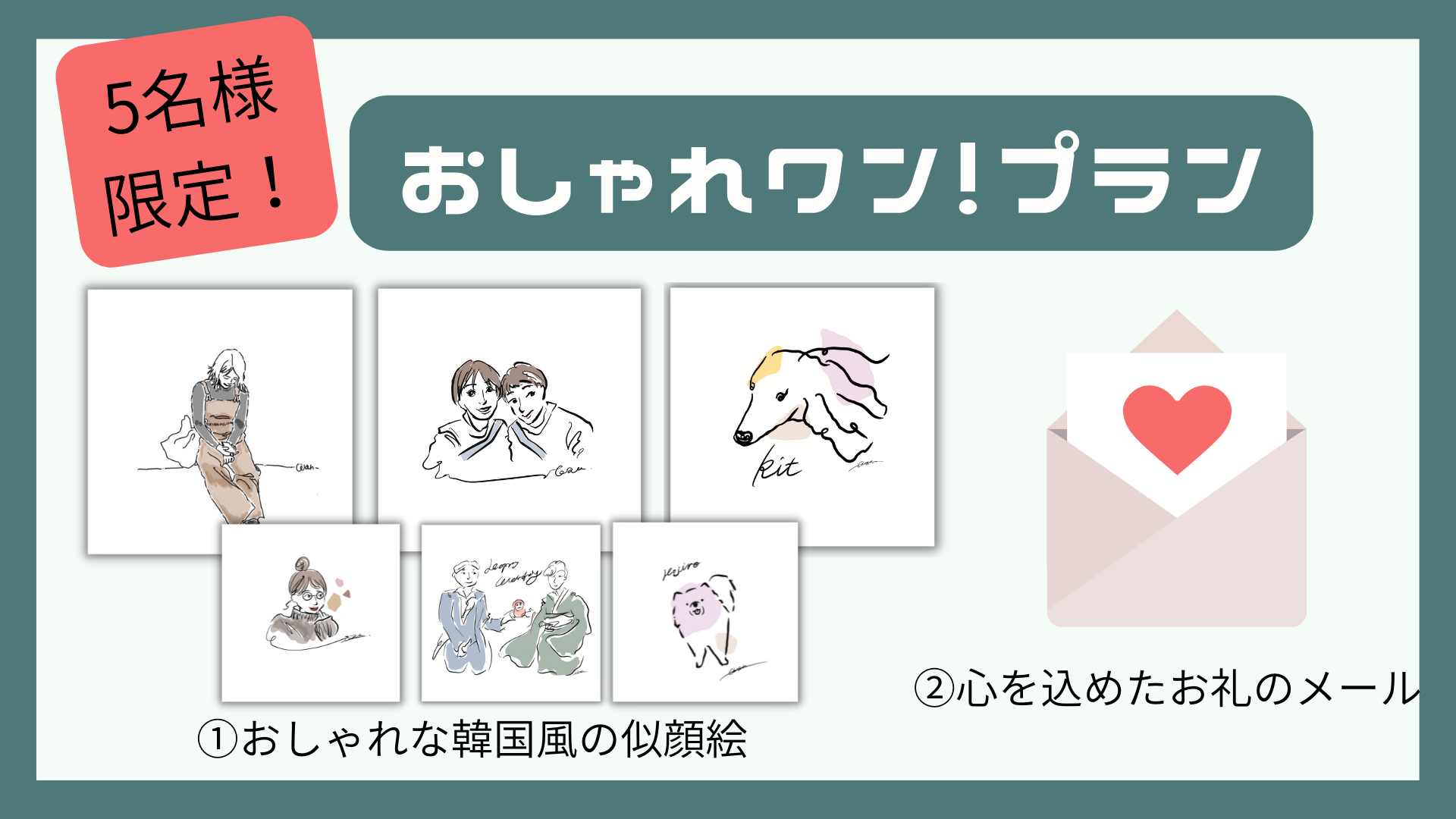 1名様限定のスクエア型の、似顔絵プランなど
