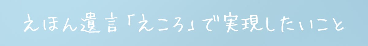 絵本のちからで、遺言書を書くことがもっと楽しく身近な文化になり、遺言書をきちんと準備したことで相続トラブルに見舞われることなく、家族の幸せが末永く続く―そのために、えほん遺言「えころ」を活用していただきたいと思っています。