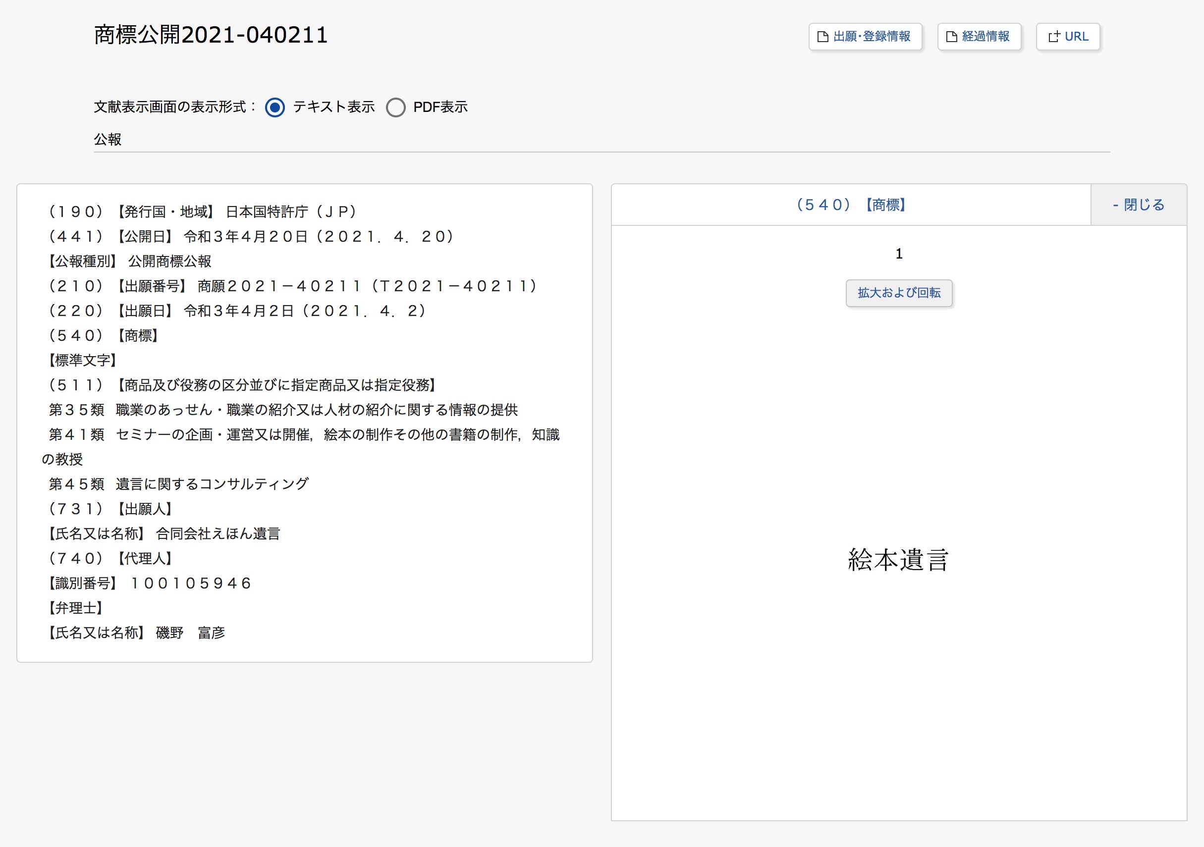 本日めでたく特許庁より許可が下り、昨年4月に出願していた「絵本(えほん)遺言」と「えころ」の商標登録完了しました!(詳細は、添付画像の通りです。)登録まで10ヶ月ほどかかったので、ご担当いただいた弁理士さんには大変感謝です。思い返せば、「えころ」というサービス名を考える際に、商標登録可能性のあるものにするために、結構苦労しました。。。あぁでもないこうでもないと、弟と何度もアイディアを出し合い、議論を重ねたのを思い出します…!ちなみに、サービス名の「えころ」は、絵本のちからで、心を繋いでいきたい、残していきたい、という思いを込めて名付けました。これからも応援の程、よろしくお願いいたしますm(__)m!合同会社えほん遺言 代表社員水上 瞳