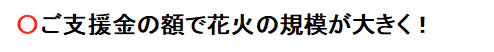 皆さまからのご支援で花火の規模を大きくしたいと思います。