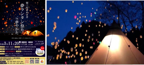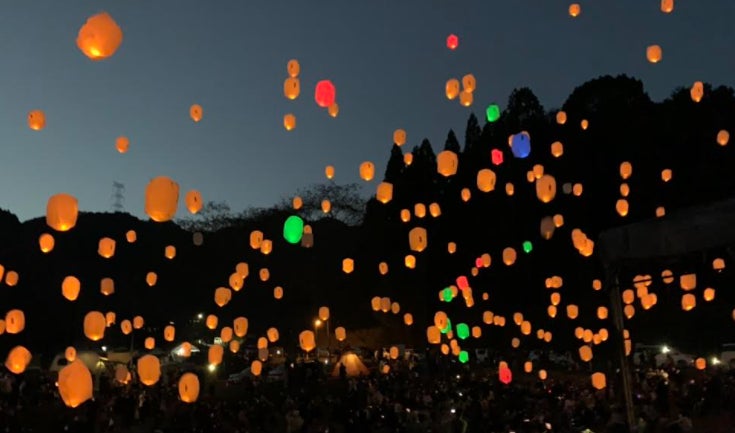 8月には書寫山圓教寺で200個、10月は櫃蔵神社で250個、11月には夢やかたキャンプ場で300個のランタンを皆さまと上げることが出来、夜空に揺らぐ優しい光と共に心を和ませる時間を過ごすことが出来ました。