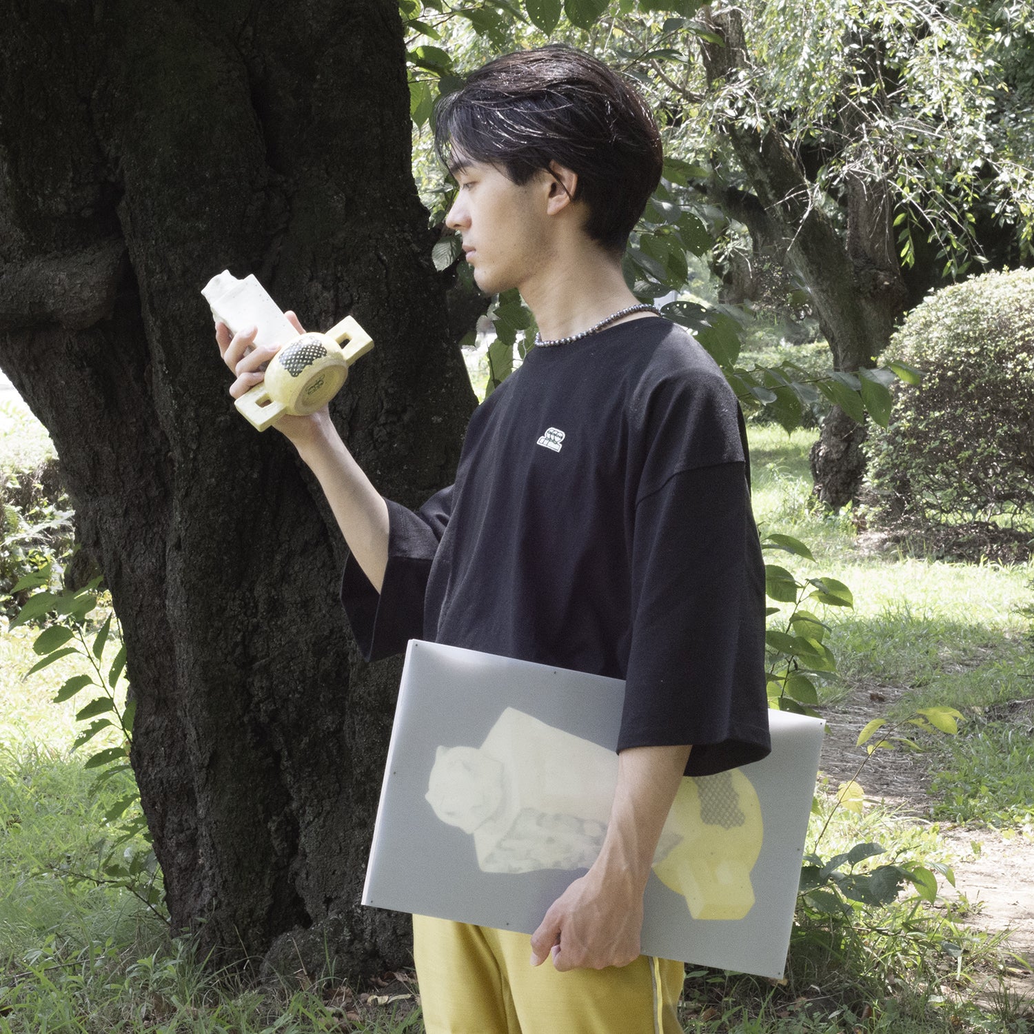 多摩美術大学彫刻学科&服飾専門学校を卒業後、アパレルメーカーで服飾デザイナーとして勤務。退職後フリーのイラストレーターや遺跡発掘調査員として働いた後、渡英。ロンドンで陶芸をスタートし、帰国後今までの経験や技術を集約し表現できないかと考え、2021年に服、セラミックアート、ラグがメインのブランドをスタート。主な展覧会「Tetras : Thoughts」(原宿/東京/2021)、「object」(岡崎/京都/2021)