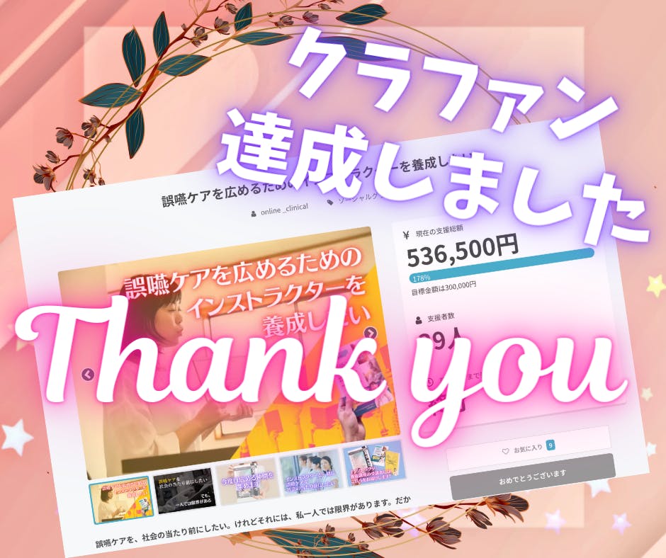 この度は、誤嚥ケアを広めるためのインストラクターを養成したい!プロジェクトへ、たくさんの応援をいただきまして誠にありがとうございました。
