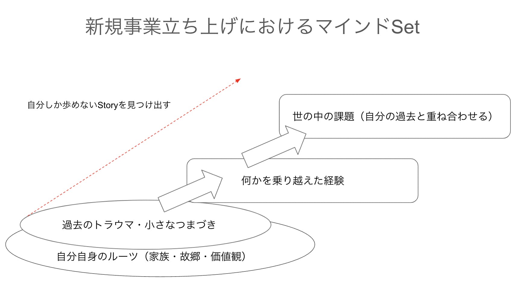 どんな事業家の人々も、最初はとてもピュアな想いで事業を始めます。そこから事業が立ち上がり、投資家の方々が入るようになると、色々なプレッシャーや「競合にどう勝つか?」「IPOのためにどうするか?」「組織を作るためにどうするか」本来事業のことだけを考えていたはずが、色々と事業以外のことも多く考えることが増えてくるようになります。イメージで言うとこのようなイメージです。