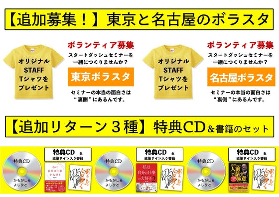 1. 特典CD&ビジネス書『私は自分の仕事が大好き』に、鴨頭嘉人本人がサインを入れてプレゼント!