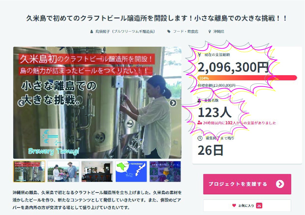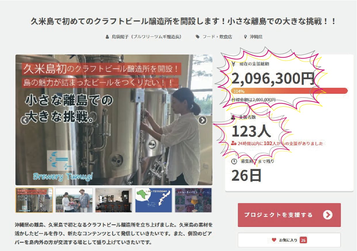 皆さんのおかげで、目標としていた200万円を初日のうちに達成することができました!