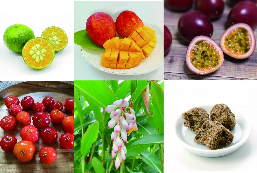 シークワーサー、マンゴー、パッションフルーツ、ピタンガ、月桃、純黒糖