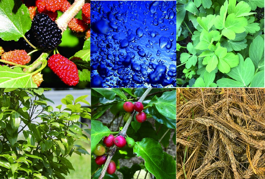 桑の実、海洋深層水、長命草、ヤブニッケイ、コーヒー、もち麦