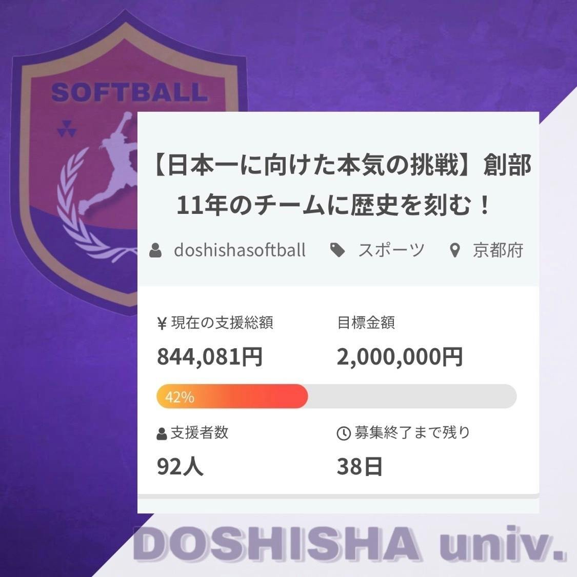 初日でクラウドファンディングの支援金が目標金額の42%を達成しました!ご支援して下さった皆様、本当にありがとうございます。初日からこんなにも沢山の方々にご支援して頂き、部員一同驚いているのと同時に、伝えきれない程の感謝の気持ちでいっぱいです!そして、「日本一」という目標に向かって、身の引き締まる思いがより一層強くなりました。
