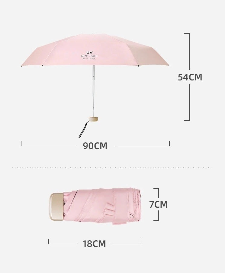 とてもカラフルで、コンパクトな晴雨兼用の折りたたみ日傘のサイズは
