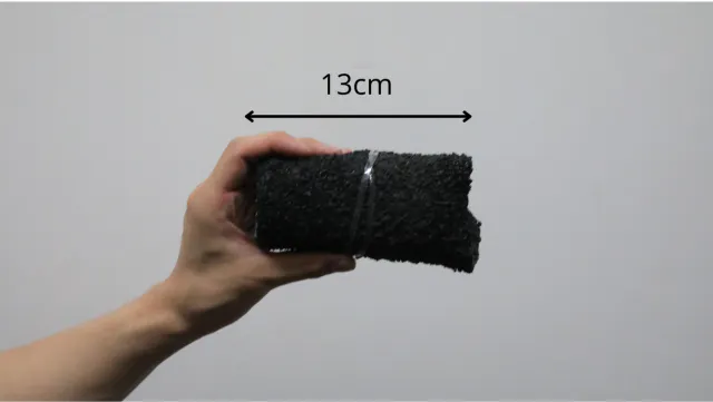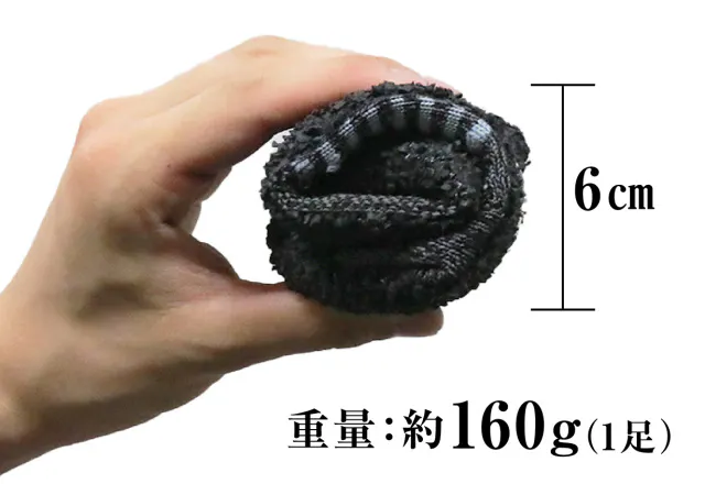 重量は片足160g、両足合わせて320gです。大きさは丸めると直径6cm、横13cmになります。