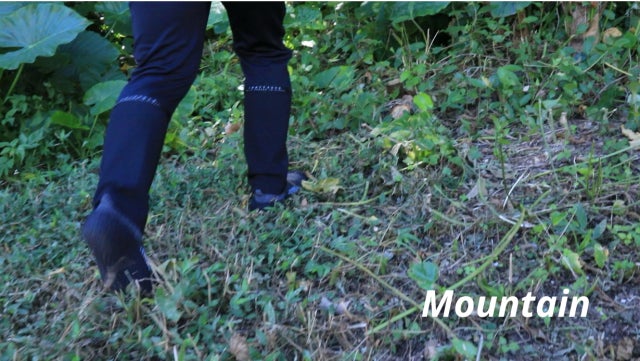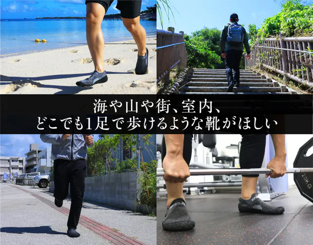 特殊な加工をしたソールゴムを使用しており、柔軟性、強度に優れています。また、底は通常の靴と同様、雨上がりの街や山道も問題なく歩くことができますよ。