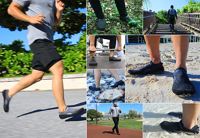 スリッパ、サンダル、ランニングシューズ、室内シューズが一つになった4in1のSpaadyシューズソックスは、これ一つで旅行やアウトドアへ行くことができます!