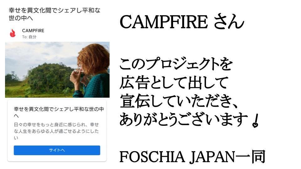 CAMPFIRE さん 広告、私のスマホにも出ました!ありがとうございます。