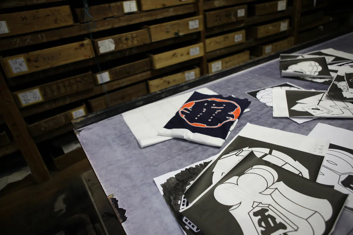 メインの仕事は、歌舞伎や古典舞踊の衣装の染物・刺繍加工、お坊さんの着る法衣の染物、雅楽や能・狂言の装束、お祭りの半纏や浴衣を制作しております!