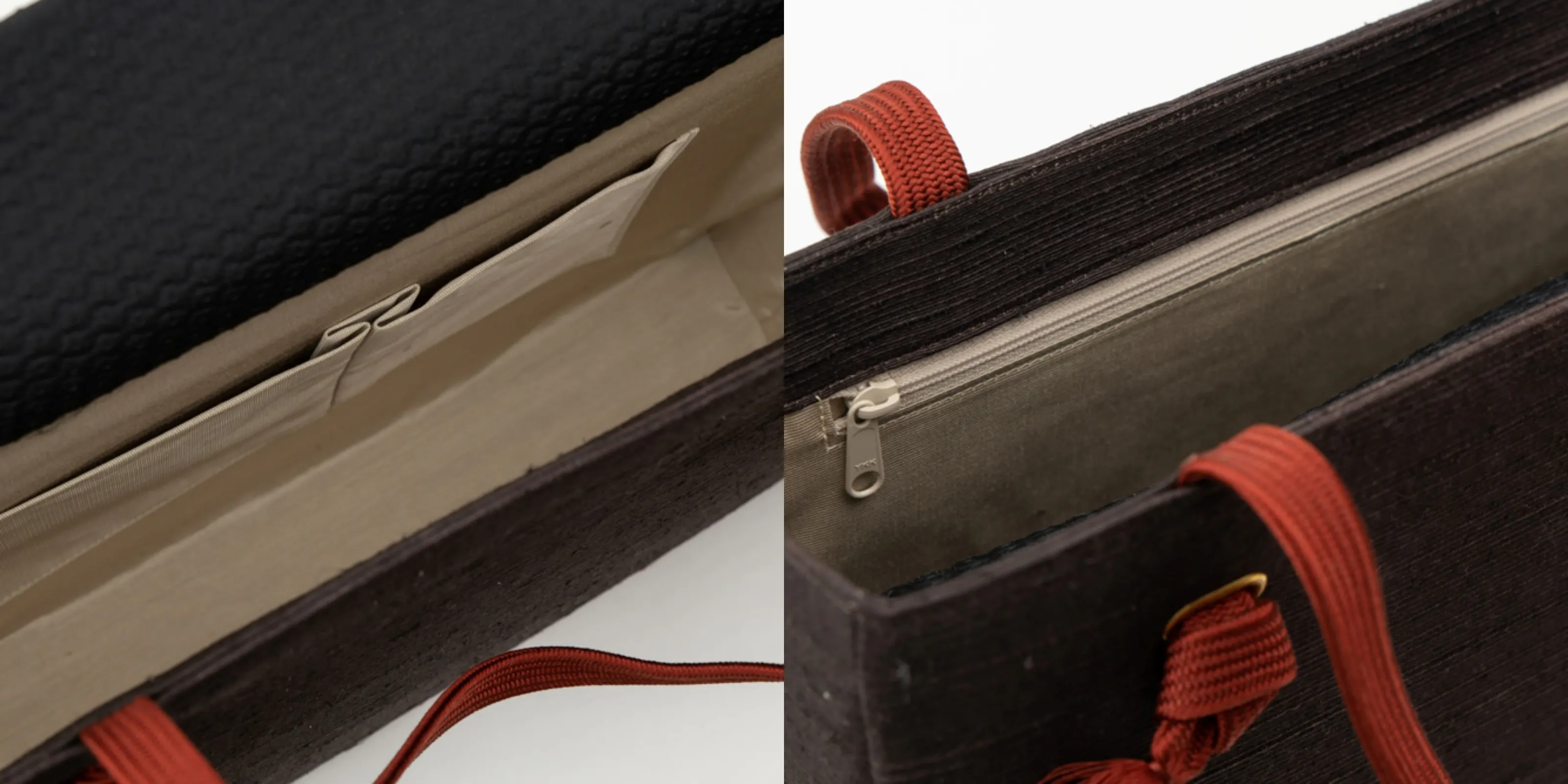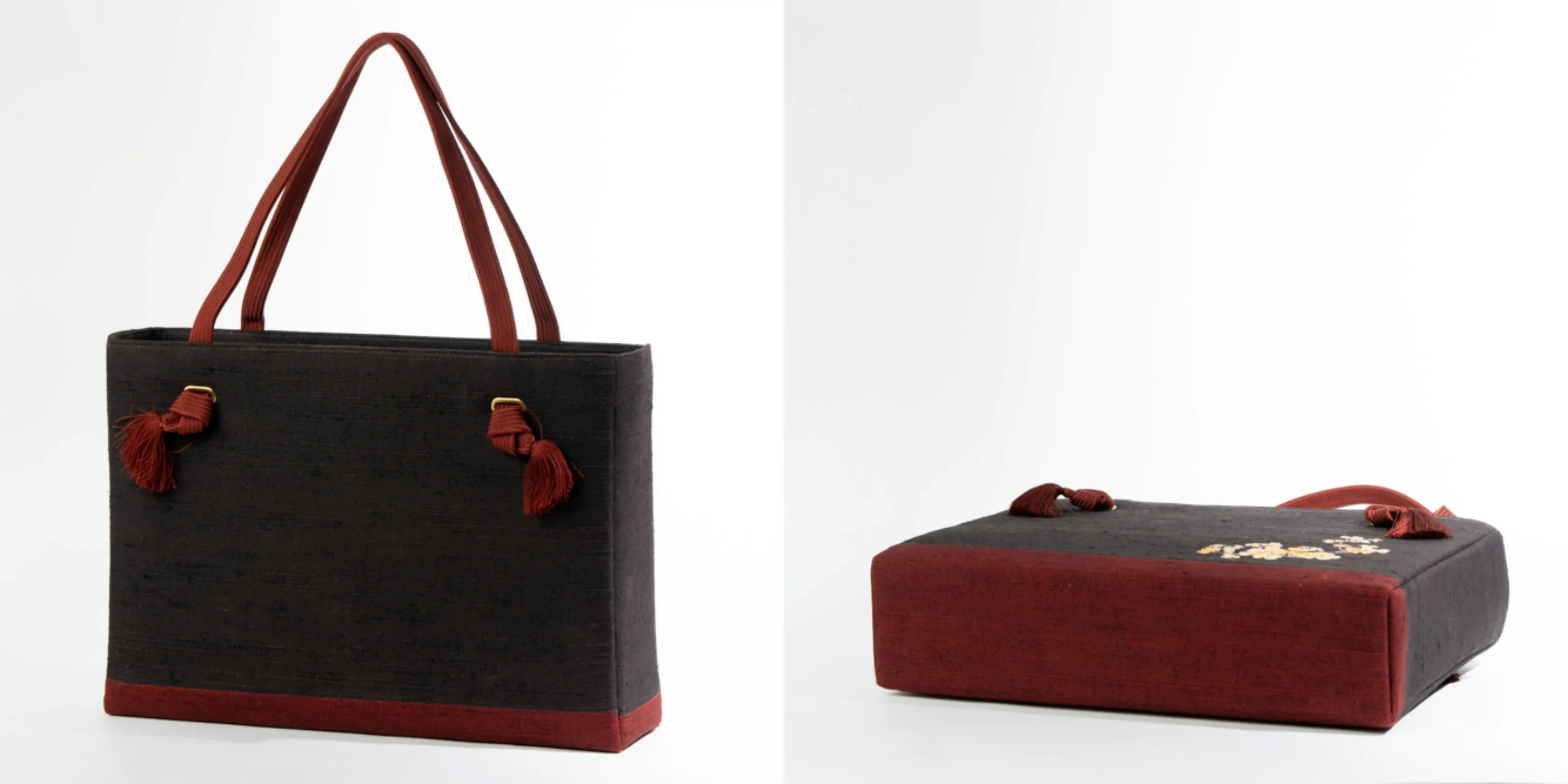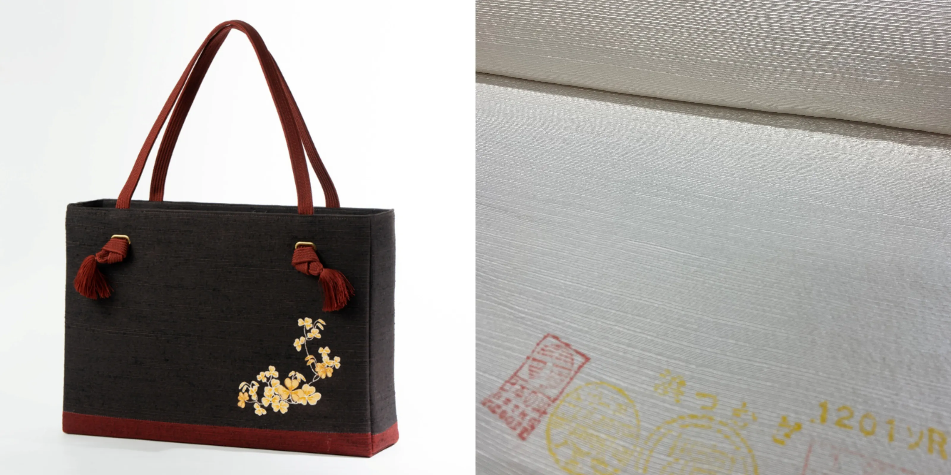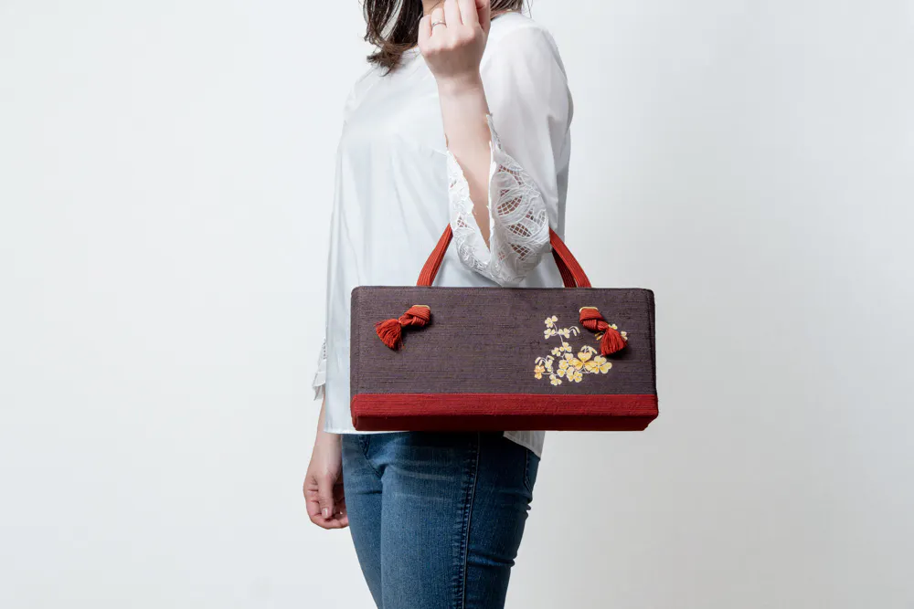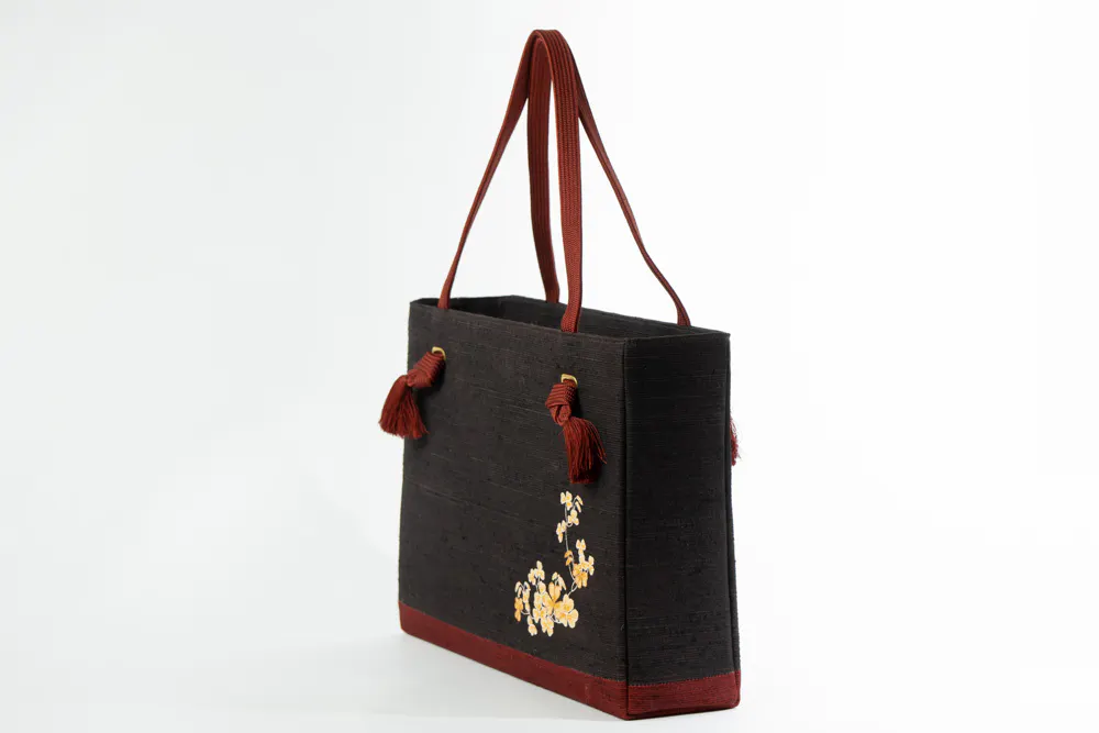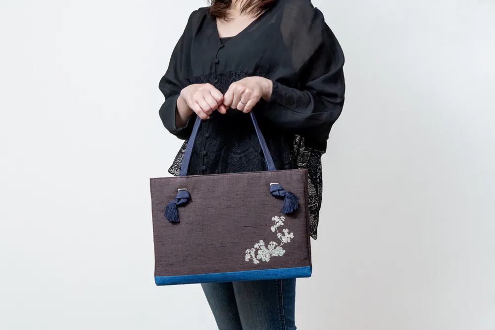 さらに様々な工夫を凝らして作られた紬糸をよこ糸として織り込んで作られている浜紬「はまつむぎ」を使用することで、丈夫なバッグを作成いたしました。