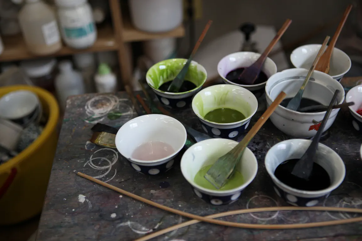 糊を用いることで日本絵画のように色鮮やかで美しい模様を描くことが可能で、現代の高性能な機械でも出せない色味なども表現できます。