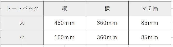 ~トートバックのサイズについて~