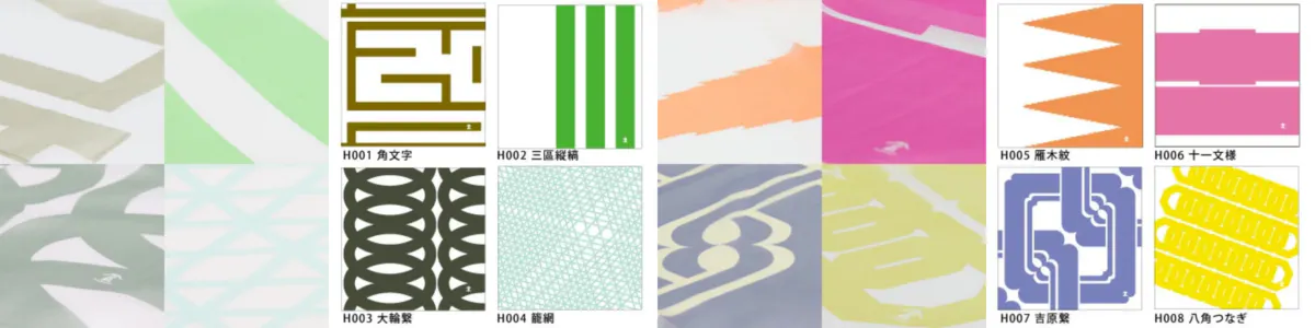 着物や半纏に用いられる雁木紋や八角つなぎなどの紋様柄をモダンかつ大胆に表現したハンカチーフです。