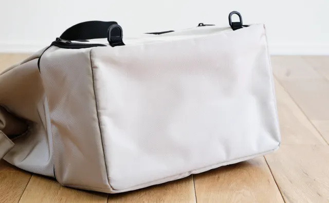 厚めで丈夫な生地を使用し、バッグの中に骨を入れているため、型崩れしにくく、荷物の偏りも抑えられます。