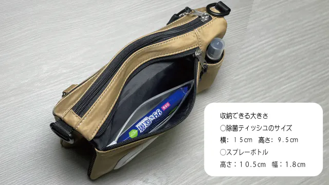 ▪️除菌ティッシュ収納部分: パックのサイズ(横:15cm 高さ:9.5cm)