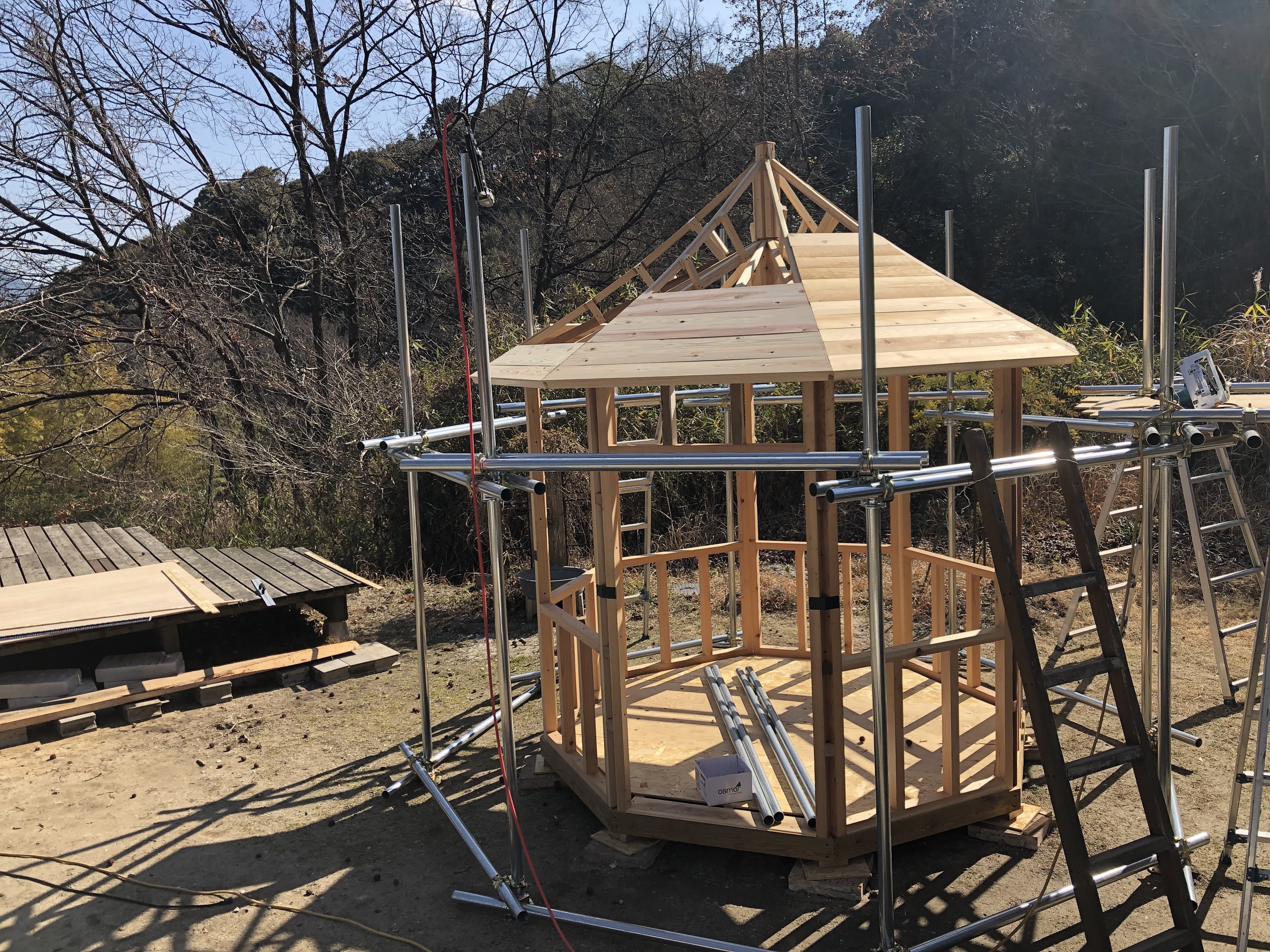 メインツリーハウスの屋根の下地作業が進んでいます!