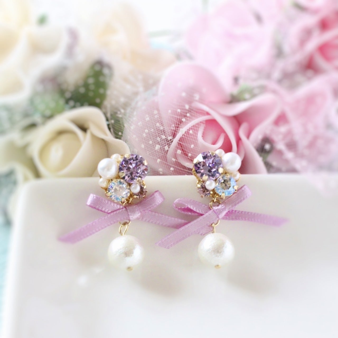 また、リボンやパール、チェコガラスなど素材にこだわって作成しているため、