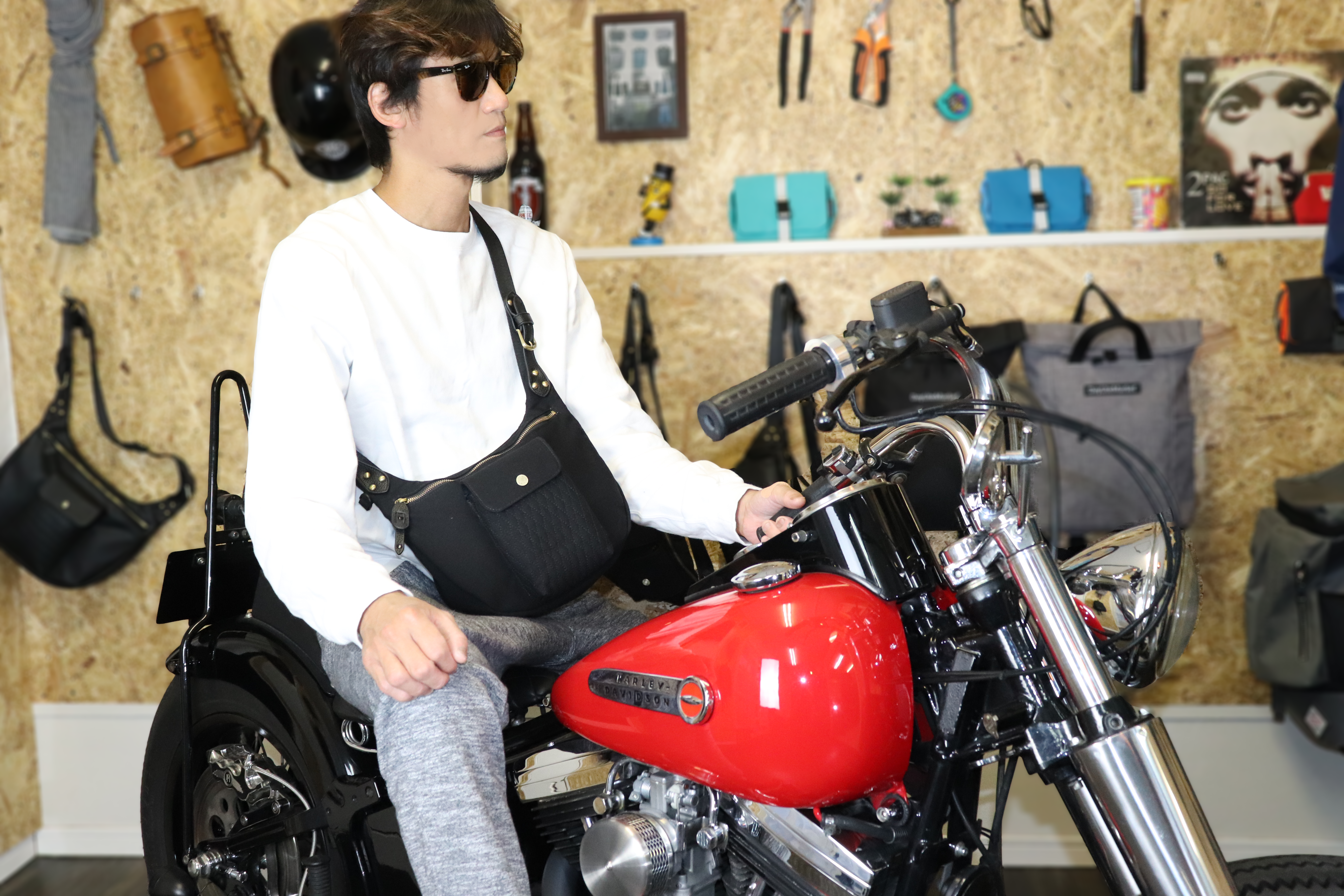 ・プロジェクトは、バイクにまたがっている時、街中を歩いている時、ペットとの散歩中でもスタイリッシュ&機能的でよりカッコいいバッグを持ってもらいたいと思い、底マチが10cmあるダイヤステッチのショルダーバッグを考えました。