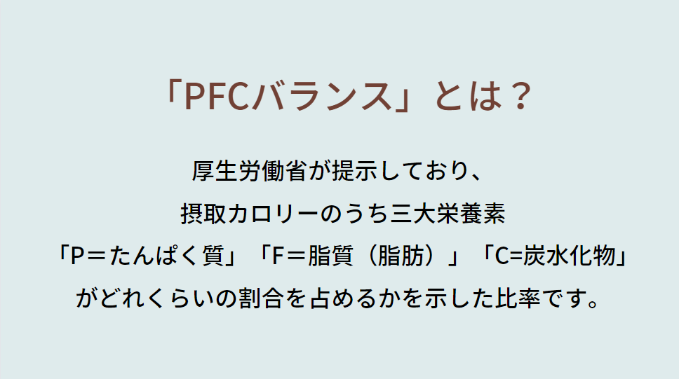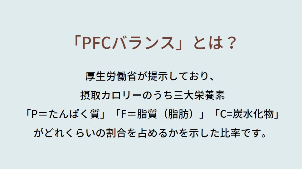 その際に、武内製薬様からPFCバランスという概念を教えていただきました。