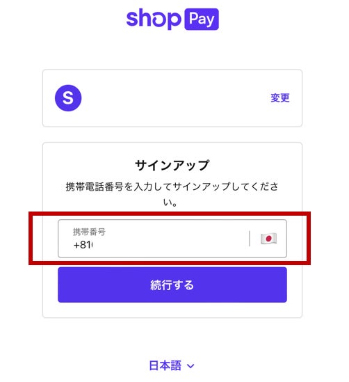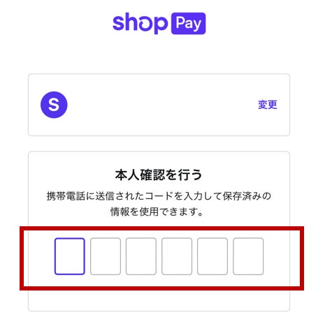 「Shop Pay」では決済時に登録電話番号にSMSで送付される認証コードを入力することで、都度カード情報を入力する手間がなくお買い物を続けることができるので、2回目以降に購入する際には非常にスムーズに決済を行うことができます。