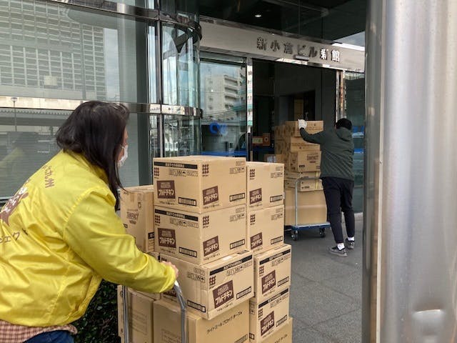 2021/12/14 18:33明日はクラウドファンディングの最終日です。11月15日からスタートした私たちのプロジェクトは、明日で終了いたします。後一日、どうぞよろしくお願いいたします。千世帯に向けての食品の箱詰め作業も明日が最終日、残り200箱の箱詰め作業を九州電力様の社屋内(北九州支社)で行わせていただきます。今日は、その準備として食品の運び込みを行いました。明日は、たくさんの九州電力社員の皆様方が、ボランティアとして参加してくださいます。皆様方のご支援で、各家庭に食品が届けられる日が近づいてきました。感謝!! もっと見る