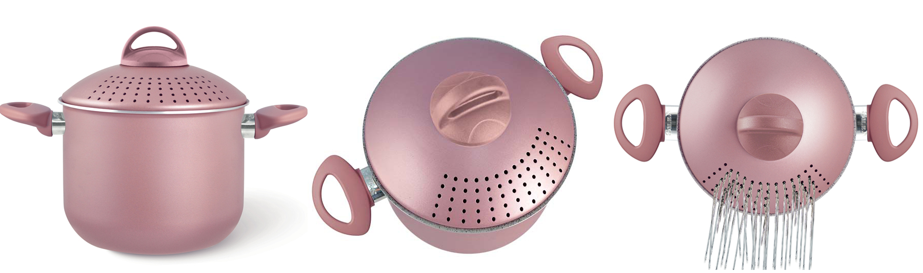 ロックシステムに特許を取得。逆さまにしても蓋が落ちないため水切りが楽々。水を切った後、鍋を変えずにそのまま調理できます。