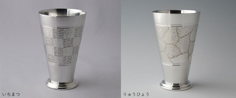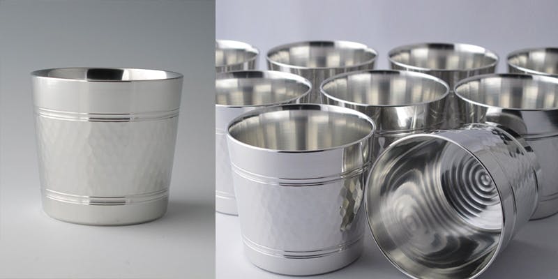 シンプルな表面装飾「つちめ」を施したタンブラーは錫光代表作のひとつです。