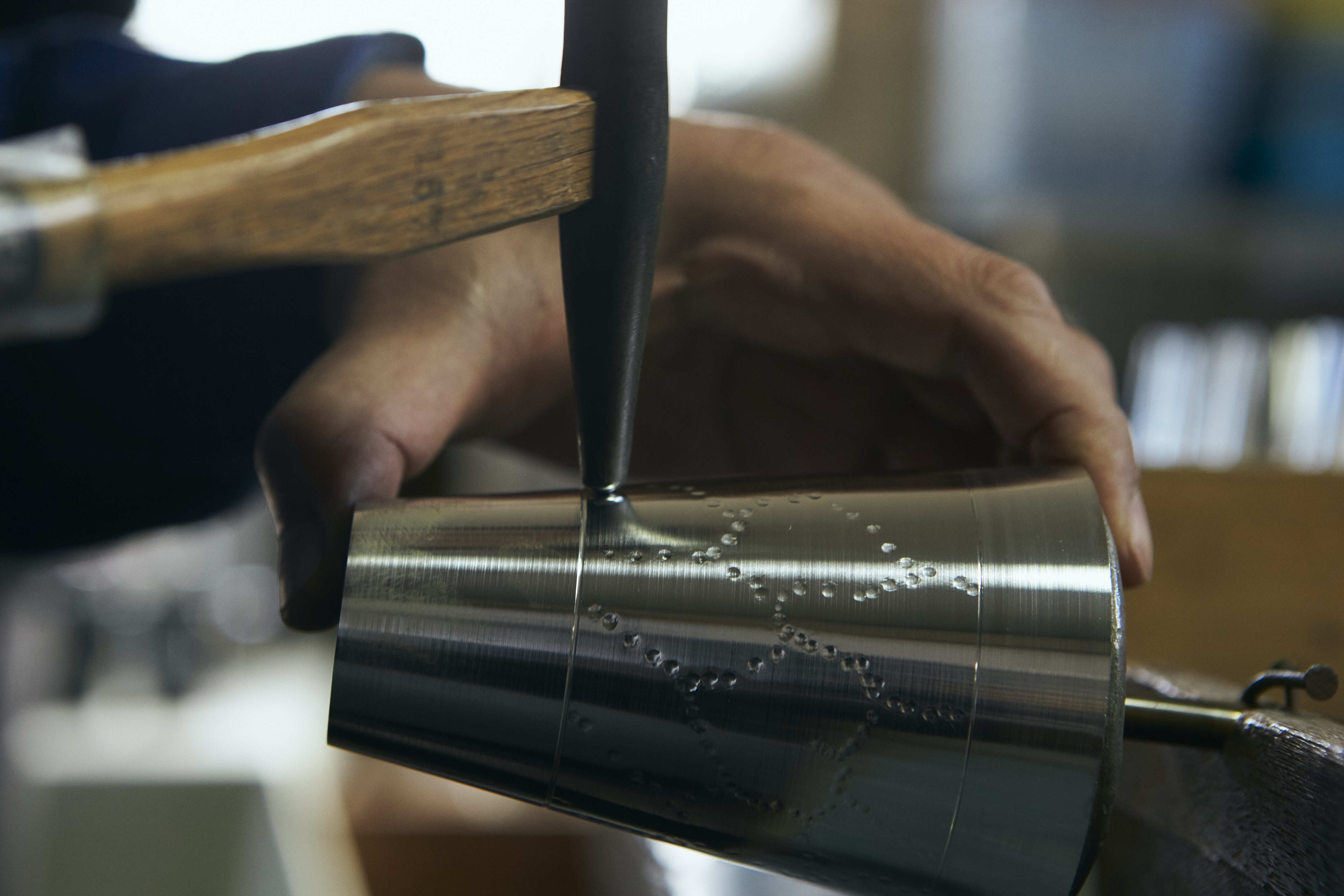 中村氏:錫は、実際にも見た目にも柔らかく、そして温かみのある優しい金属だと思います。ロクロ挽きの錫製品は、ツヤを良く仕上げるのが基本です。