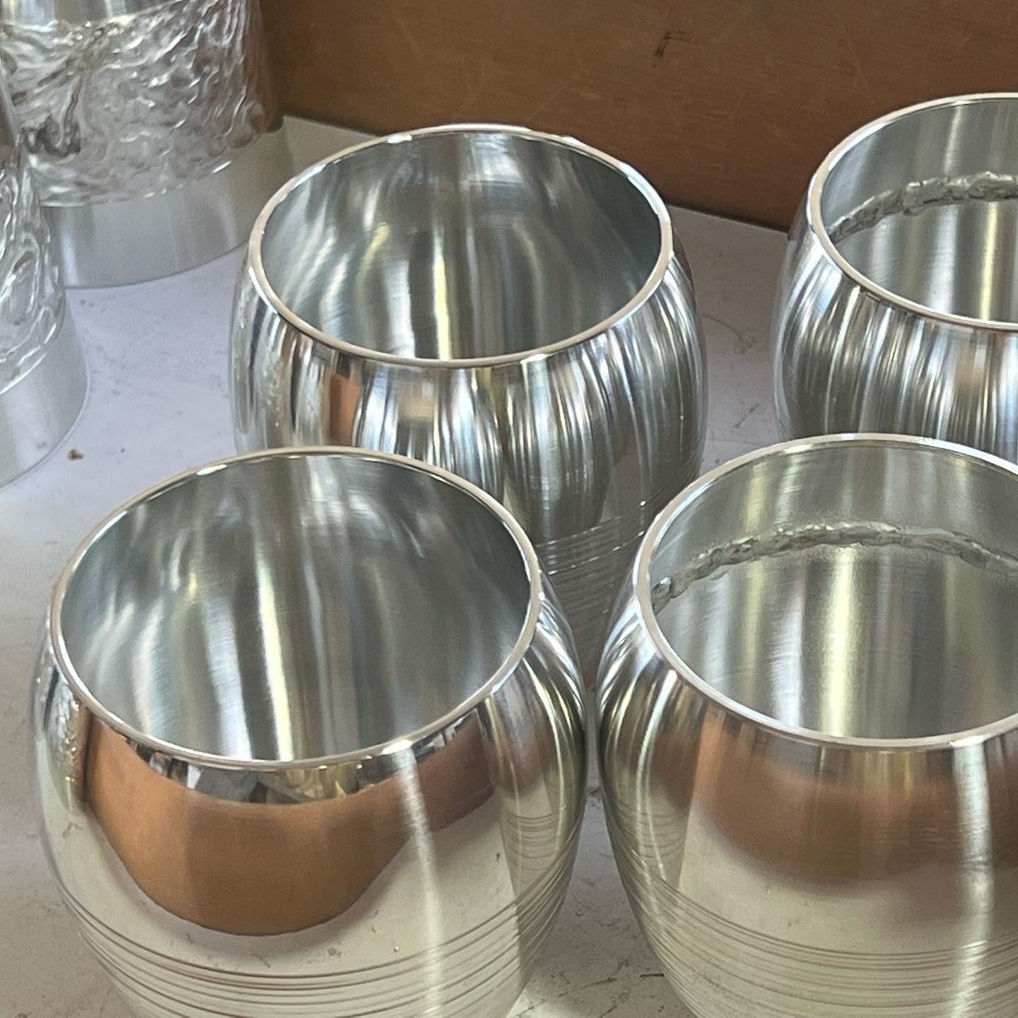 ところで、リターン品の製作ですが、この錫調達を充てにして先行して作業に入っています。下記写真は、「花ことば」1.5合片口と、タンブラーオールド9オンス「カオス黒赤」です。