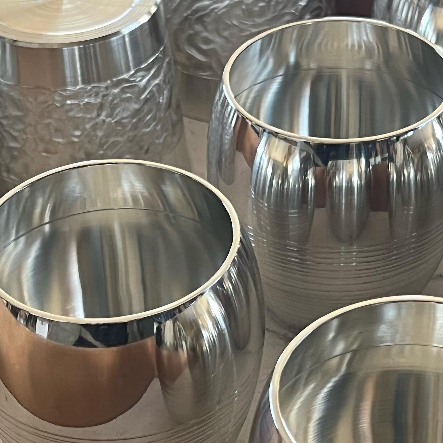 この後、漆を塗るための下準備としてサンドブラストで表面を荒らし、拭き漆で漆を施して参ります。錫光では、複数回漆を塗り、口をつけたり、内側を削ったりの作業を進めつつ、塗り終わりから後、漆が落ち着く据置期間として少なくとも1週間経過してから出荷の準備をするようにしています。
