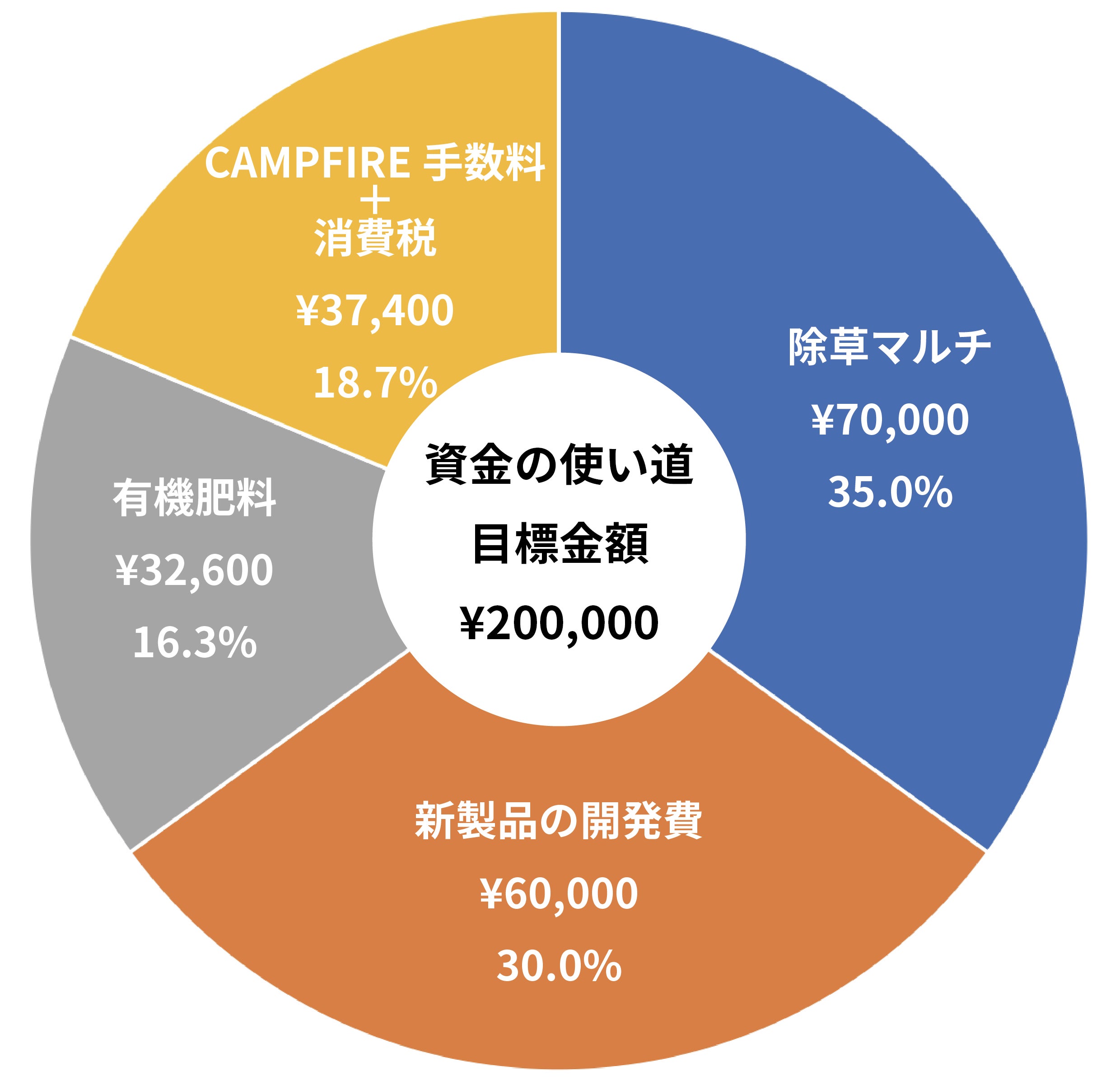 ご支援いただいた資金は今後広がる農地の除草マルチ、肥料、新製品の開発費(サンプル試作等)、CAMPFIRE手数料などに使用します。