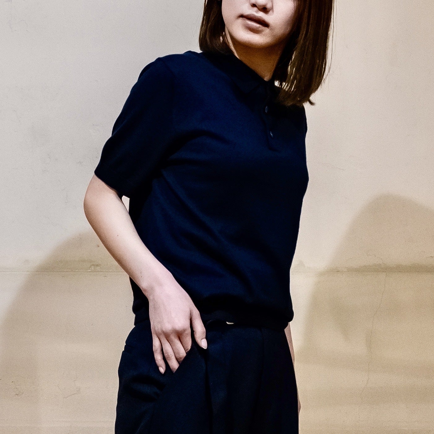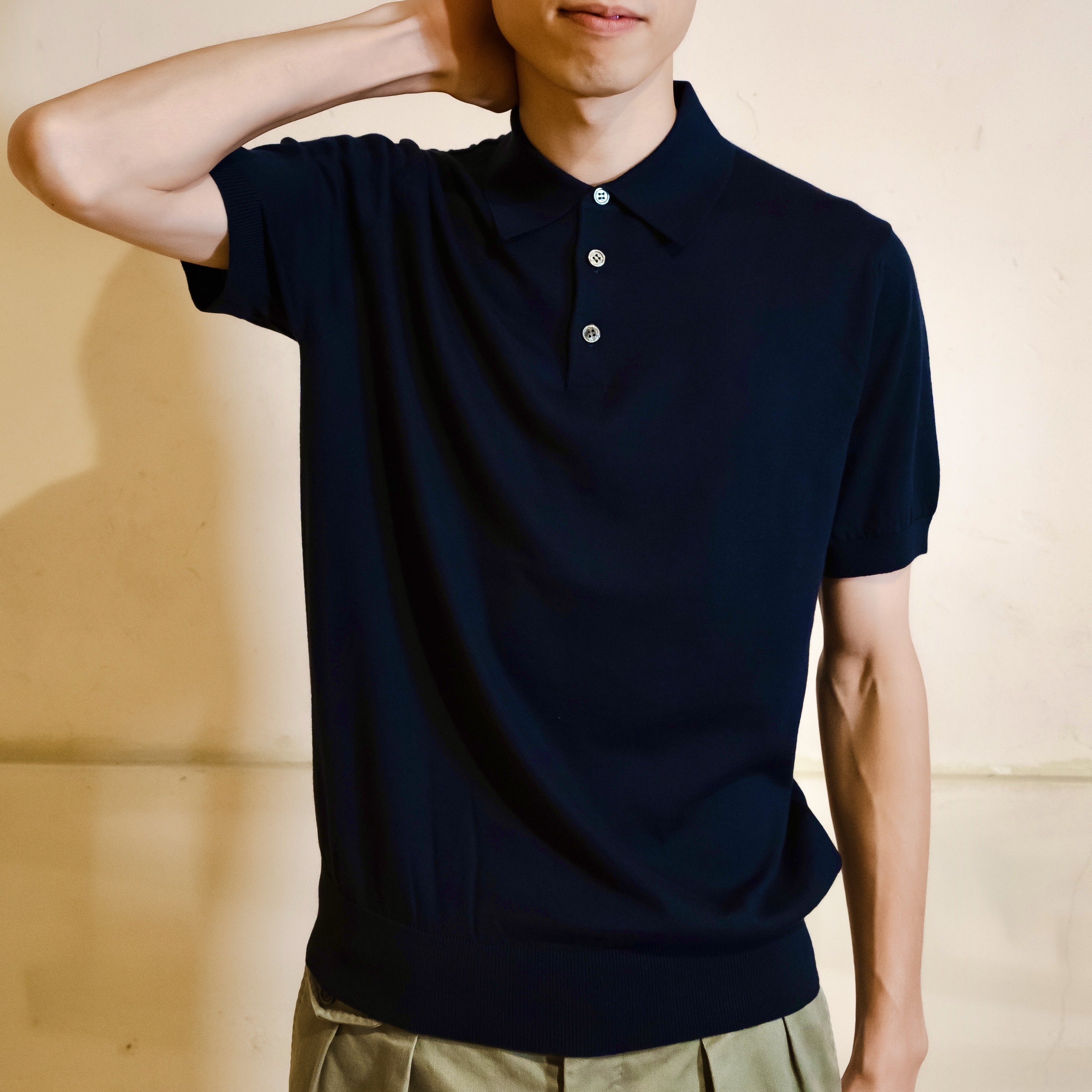 18ゲージ横編みニットポロシャツ