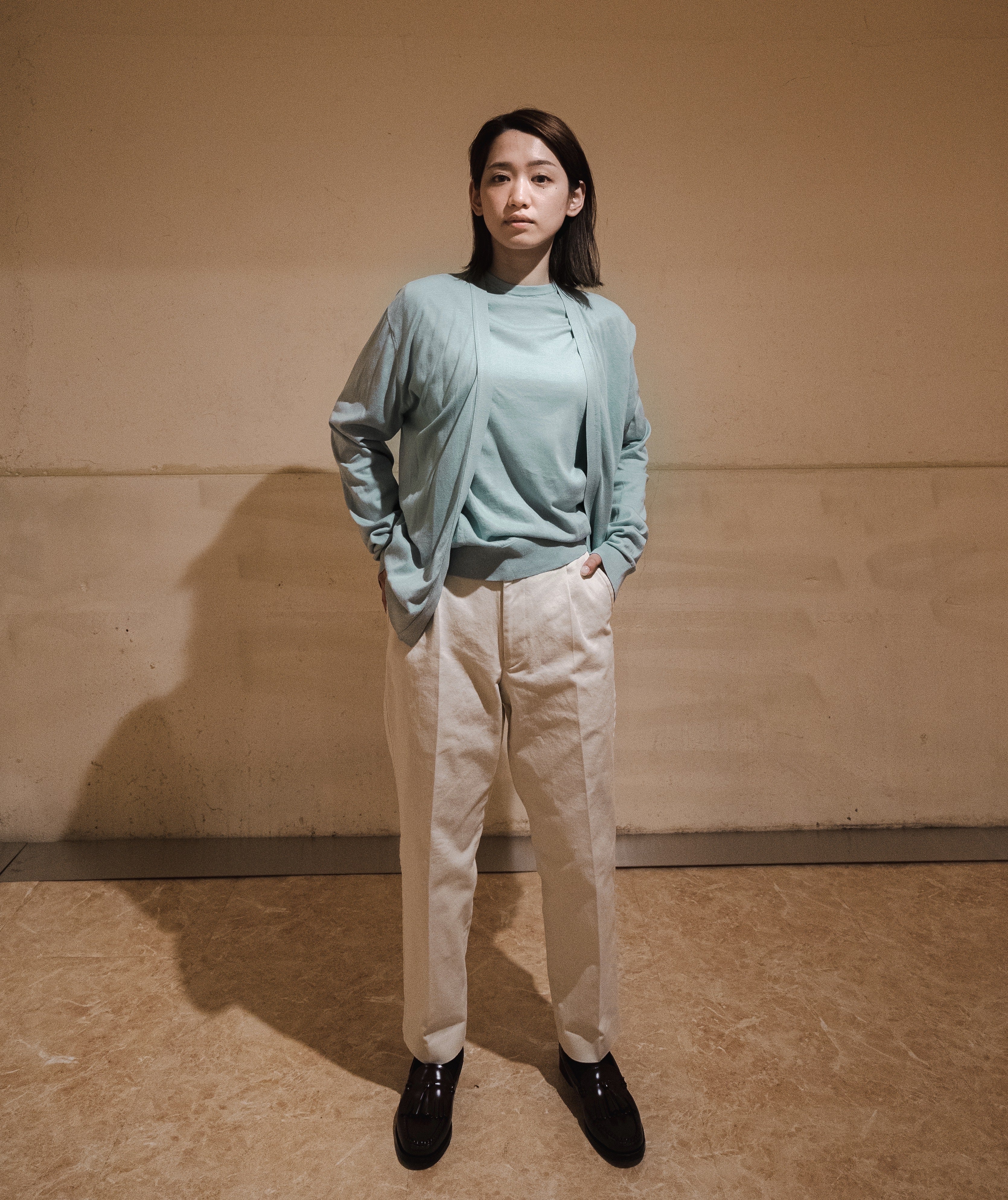 カジュアルになりすぎず、ラフさと上品さのバランスがとれたスタイルになります。