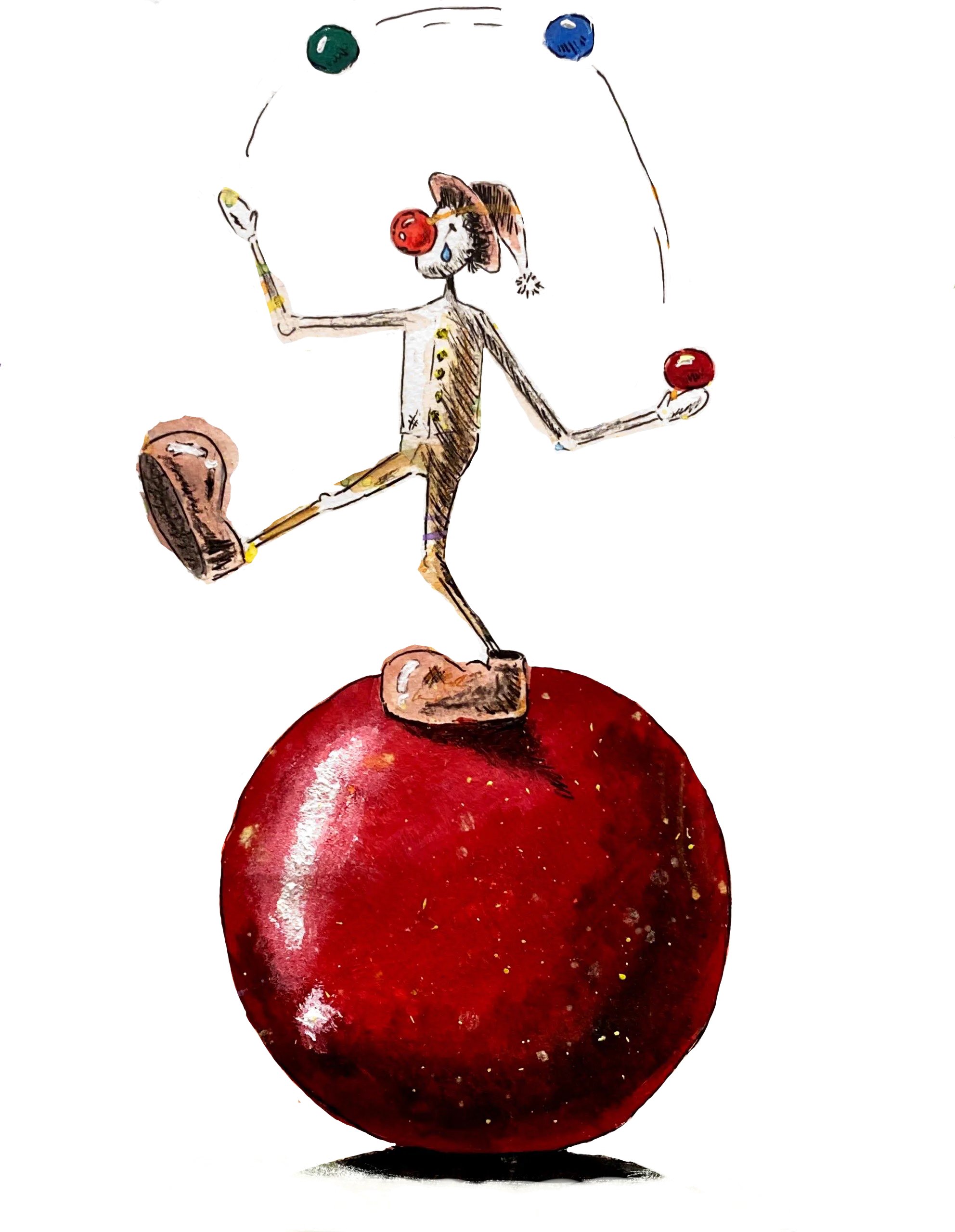 ▲物語に出てくるピエロの帽子のデザインのスケッチです。
