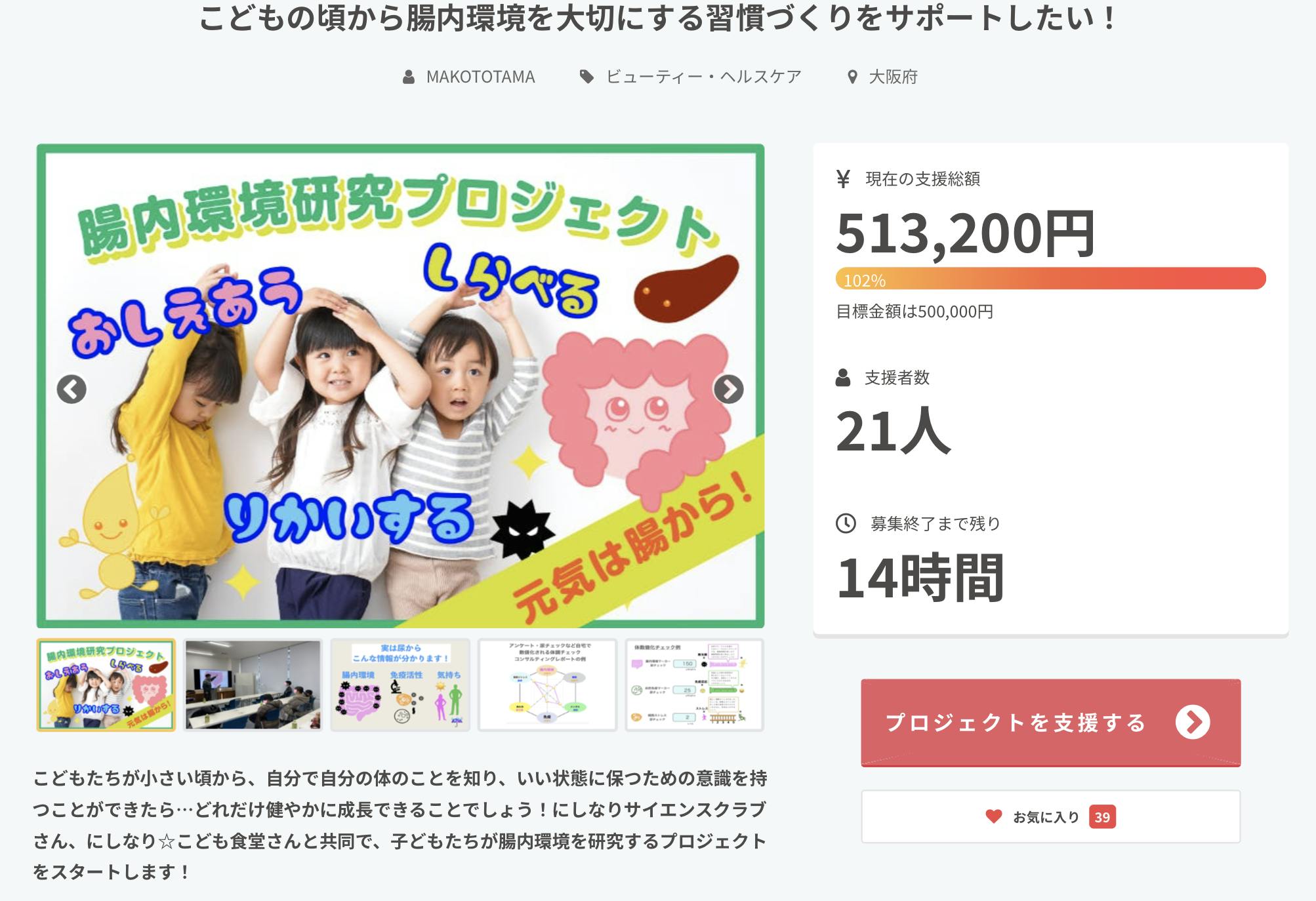 残り12時間となったこどもたちとの腸内環境プロジェクト目標金額達成しました。このページを見てくださってり、紹介してくださったりと応援してくださった方々リターンを通じて支援してくださった方々のおかげです。ありがとうございます!残り時間少ないですがネクストゴール75万円75万円の到達したら、、、企画ZOOMでご挨拶可能な方へお礼として基礎からわかる免疫講座をプレゼントいたします。あと半日で+24万円で、プロジェクトの可能性が拡がります。よろしくお願いいたします。こども食堂では、サイエンスクラブ に参加していない子供たちもいます。一人一人にあった有形無形の何かを手渡していきたいものです。 もっと見る