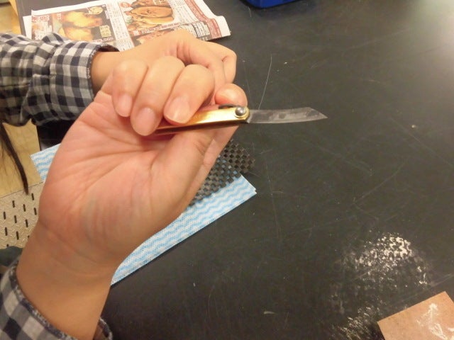 肥後守ナイフに刃を付けず にお渡しして簡単な説明だけで研ぎ始めて戴きました、