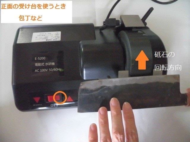 縦研ぎ式でも、柄の部分が本機に当たることが有るので正面と背面を使えるようにしたので