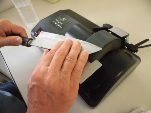 簡単で、しっかり刃が研げる、電動式 水研ぎ機の出番です。
