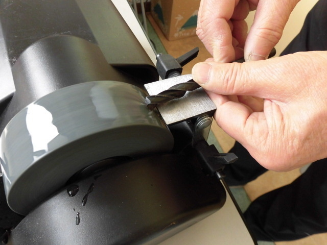 ※乾式グラインダーは研ぎ中に熱を持つので焼きが戻り刃先の硬度が維持できない。