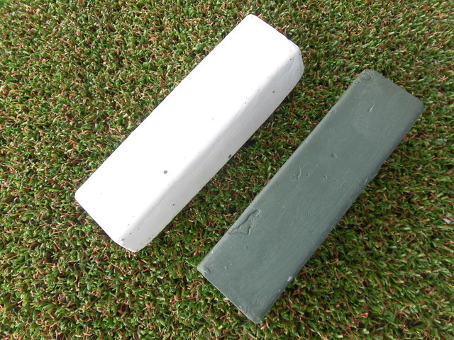 白棒をすり込むと中研ぎ。 青棒をすり込むと仕上げ研ぎができます。