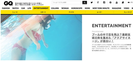 先日のアクアサイネージの完成披露イベントに取材しにきていただきましたGQ JAPANの記事がアップされました。
