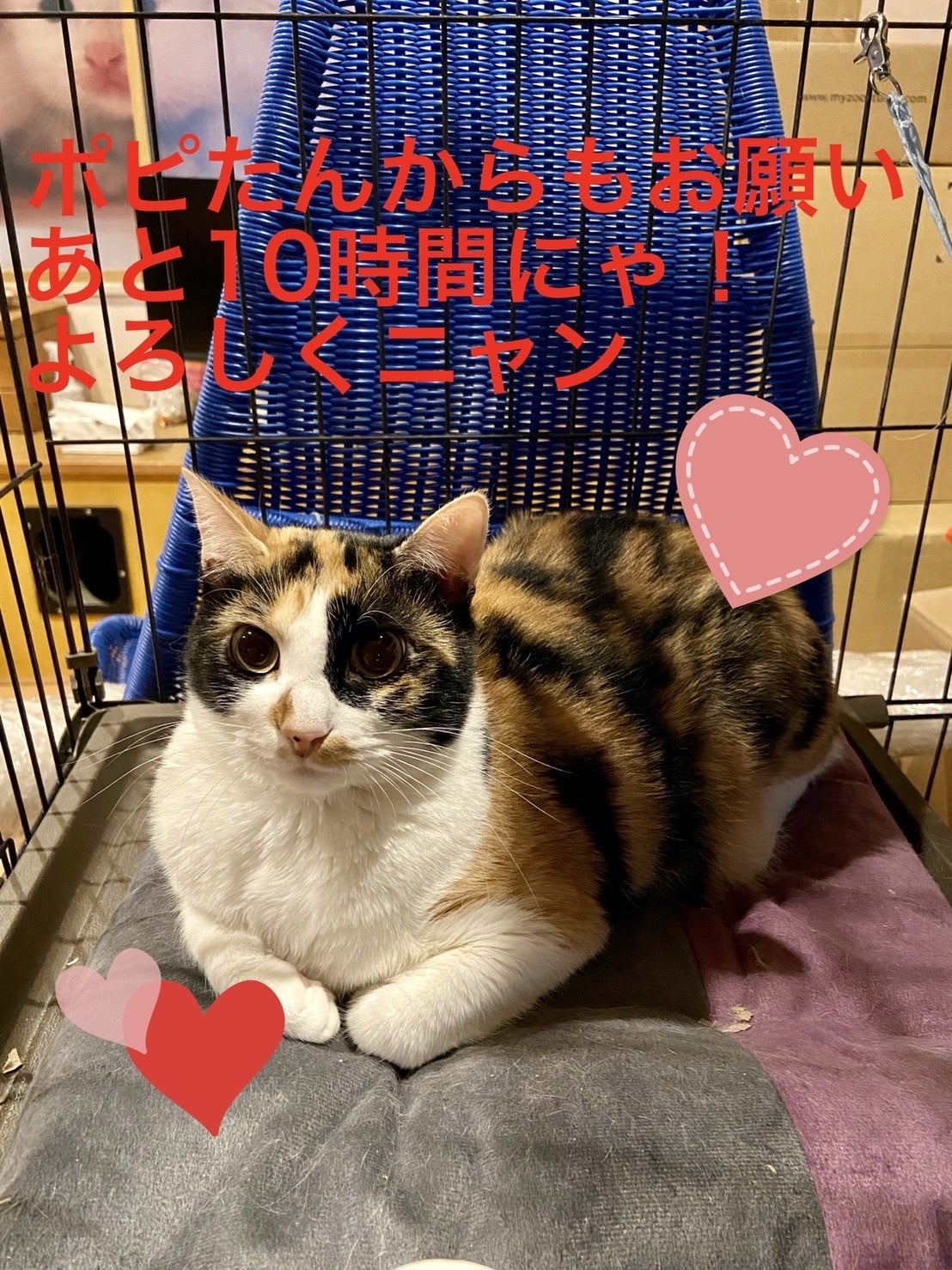 三毛猫のポピーちゃん。なかなか手ごわい子です。