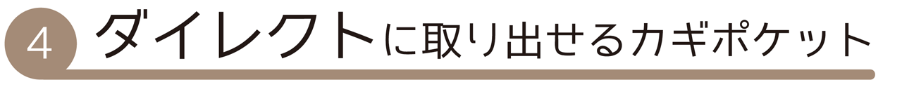 必要な時にだけ使える隠しカギポケットは、お財布を閉じたままでもカンタンに出し入れ可能。