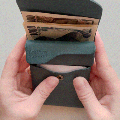お札のサイズに合わせた最小幅8cmの超スリム設計。取り出しの際にバラついたお札も、お財布のサイドをサッと押し込むことでカンタンに元通り。
